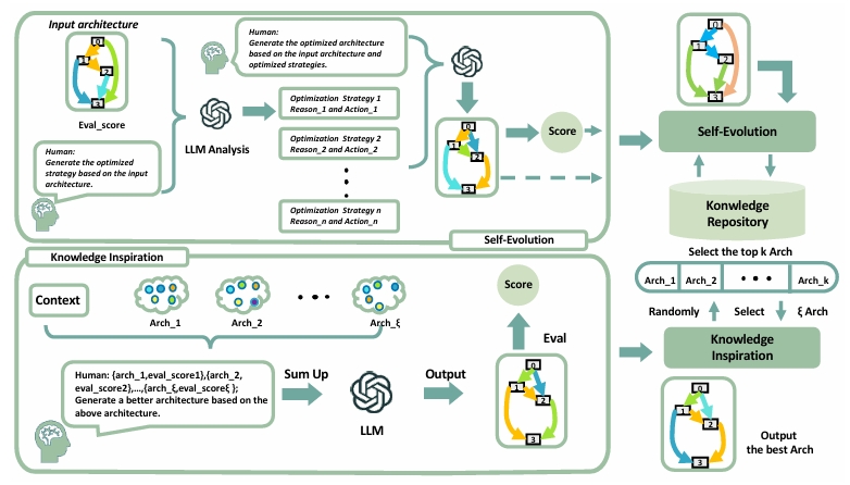 self-evolution and knowledge inspiration. In each iteration